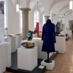 Der Entwurf befreit sich von diesem Zwang, indem er - die Stützen umfassend - Podestflächen vorsieht, in der Mitte der Räume und somit unabhängig von nicht vorhandenen Parallelitäten der Raumwände. Diesen Podesten sind die einzelnen Sockel angegliedert oder aufgestellt und bilden die Bühne für eine spannungsreiche Anordnung der Exponate, welche die Vielfalt an Materialien, Objektdimensionen und Herstellungstechniken unterstreicht und die Exponate durch gelungene Nachbarschaften in ihrer Wirkung bereichert. Durch die beidseitige Betrachtung der Ausstellungseinheit entlang der mittleren Raumachse wurde hierbei ein besonderes Augenmerk auf die Additionen der Objektgruppen zu beide Seiten gelegt.