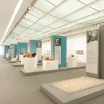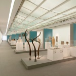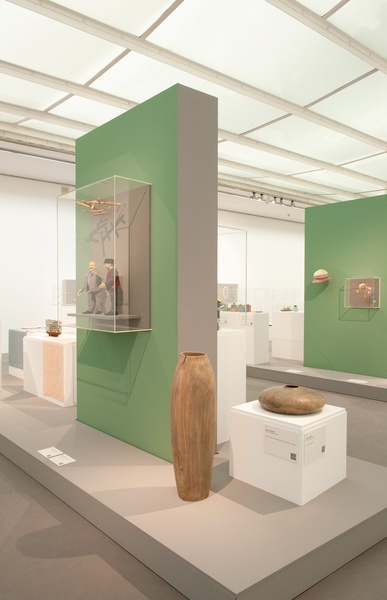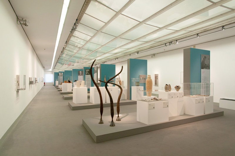 Ziel der Gestaltung war es, den Raum als Ganzes erlebbar zu machen, seine Dimension in voller Länge zu erfassen, dabei aber eine Raumgliederung zu bilden, die es ermöglicht, definierte Bereiche für die Exponatgruppen zu schaffen, für die eine spannungsreiche Anordnung gewählt werden sollte, welche die Vielfalt an Materialien, Objektdimensionen und Herstellungstechniken unterstreicht.